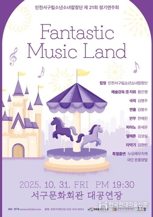 한국현대미술신문 박재남 기자 | 인천서구립소년소녀합창단이 오는 10월 31일 오후 7시 30분, 서구문화회관 대공연장에서 제21회 정기연주회 ‘Fantastic Music Land’를 개최한다.