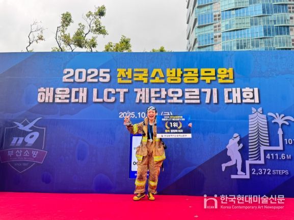 한국현대미술신문 신정은 기자 | 천안서북소방서는 지난 10월 24일 부산 해운대 LCT 랜드마크동에서 열린 ‘2025 전국소방공무원 해운대 LCT 계단오르기 대회’에서 정정민 소방교가 방화복 개인전 여자 부문 1위를 차지했다고 27일 밝혔다.