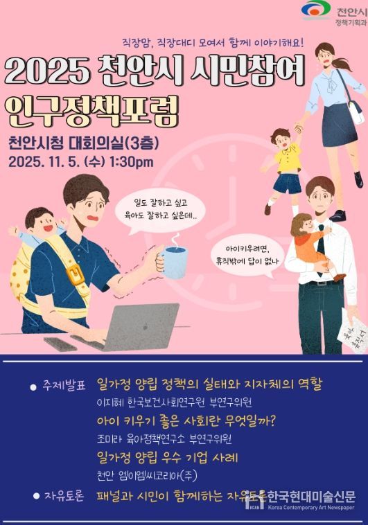 한국현대미술신문 신정은 기자 | 천안시는 다음 달 5일 시청 대회의실에서 ‘2025 천안시 시민참여 인구정책포럼’을 개최한다.