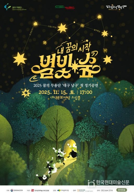 한국현대미술신문 정소영 기자 | 대구 남구청소년창작센터는 오는 11월 15일 17시 대덕문화전당 드림홀에서 꿈의 무용단 '대구 남구'의 첫 정기공연 ‘내 꿈의 시작, 별빛 숲’을 개최한다고 밝혔다.