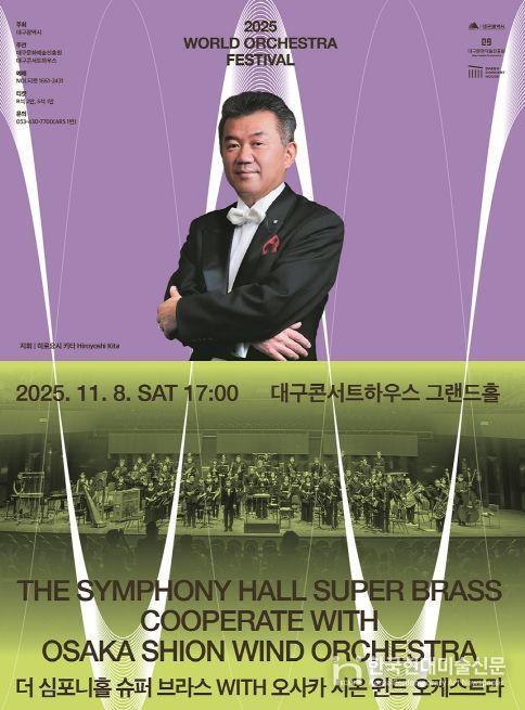한국현대미술신문 정소영 기자 | 대구콘서트하우스는 오는 11월 8일 오후 5시, 월드오케스트라페스티벌의 일환으로 ‘더 심포니홀 슈퍼 브라스 WITH 오사카 시온 윈드 오케스트라’ 공연을 개최한다.