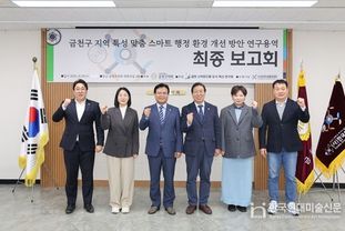 한국현대미술신문 배윤섭 기자 | 서울특별시 금천구의회 의원연구단체인‘금천 스마트드론 도시 혁신 연구회’(대표의원 김용술)는 지난 10월 29일 금천구의회 3층 대회의실에서 '금천구 지역 특성 맞춤 스마트 행정 환경 개선 방안 연구용역'에 대한 최종보고회를 개최했다.