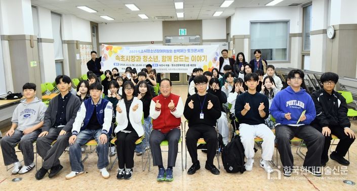 한국현대미술신문 원진 기자 | 속초시는 11월 8일 오후 3시, 아동·청소년문화의집 2층 대강당에서 이병선 속초시장과 청소년들이 진솔하게 소통하는 ‘2025 청소년 정책 토크콘서트-속닥속닥 고민상담소’를 열었다.