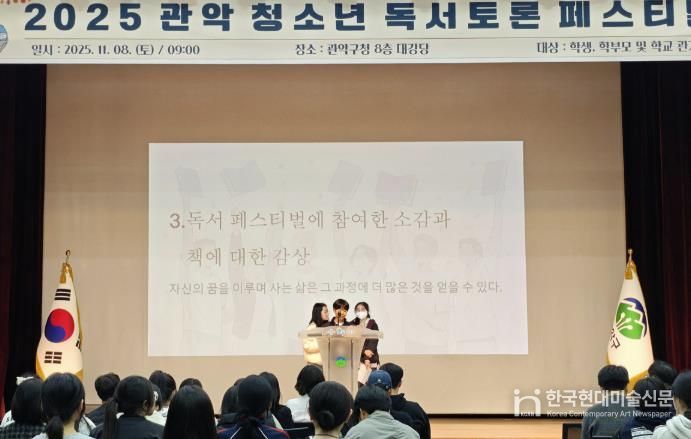 한국현대미술신문 배건 기자 | 관악구가 관악구 내 초·중·고등학생들의 비판적 사고력과 창의력 증진을 위한 ‘2025 관악 청소년 독서토론 페스티벌’을 지난 8일 성공적으로 개최했다.