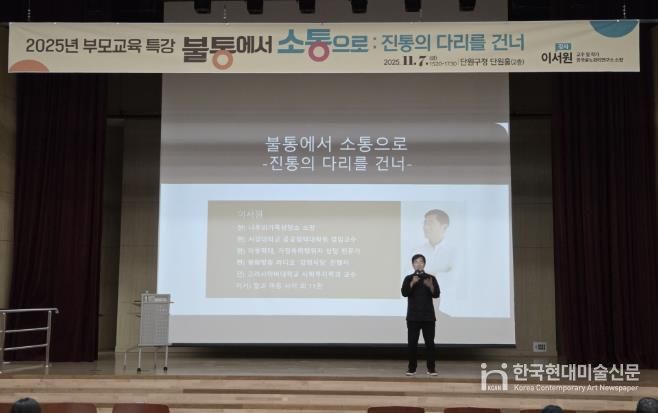 한국현대미술신문 배윤섭 기자 | 안산시는 단원구청 단원홀에서 ‘불통에서 소통으로: 진통의 다리를 건너’를 주제로 부모교육 특강을 진행했다고 11일 밝혔다.
