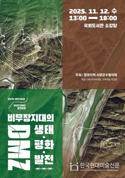 한국현대미술신문 원진 기자 | 접경지역시장·군수협의회는 오는 11월 12일 국회도서관(소강당)에서 “비무장지대의 생태·평화·발전”을 주제로 '2025 DMZ 발전포럼'을 개최한다. 이번 포럼은 올해 처음으로 열리는 행사로, 휴전 이후 70여 년간 소외되어온 접경지역의 조화로운 발전을 위해 필수적인 비무장지대(DMZ)에 대한 새로운 해석과 해외사례 분석을 통한 생태평화공원 조성 등 다양한 발전 방안을 제시할 예정이다.