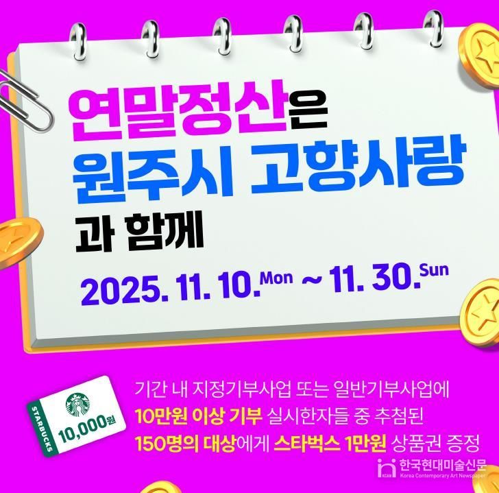 한국현대미술신문 원진 기자 | 원주시는 지정기부사업인 ‘청소년밴드 동아리 활성화 지원사업’을 시민들에게 널리 알리고, 고향사랑기부제 참여를 독려하기 위해 스타벅스 상품권 추첨 이벤트를 실시한다.