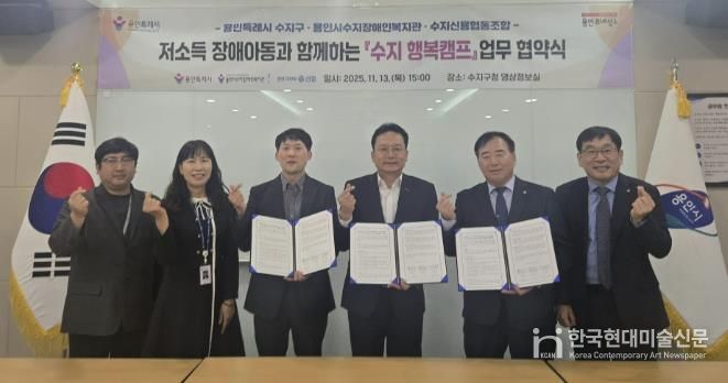 한국현대미술신문 배윤섭 기자 | 용인특례시 수지구는 13일 용인시수지장애인복지관과 수지신용협동조합과 함께 저소득 장애아동의 복지 향상과 장애 인식 개선을 위한 ‘수지 행복캠프’ 추진 업무협약을 체결했다고 14일 밝혔다.