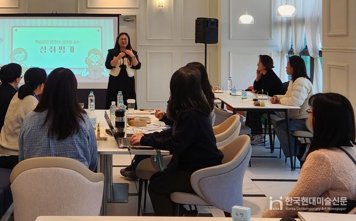 첫 회 연수는 ‘학습자 주도성을 키우는 성취평가 수업‧평가 디자인’을 주제로 진행됐으며 참여 교원들은 학교생활기록부 기반 교수학습계획–수업–평가–기록의 일체화 과정을 이해하고, 성취 기준 분석 실습과 학습자 주도 수업·평가 사례를 공유했다.