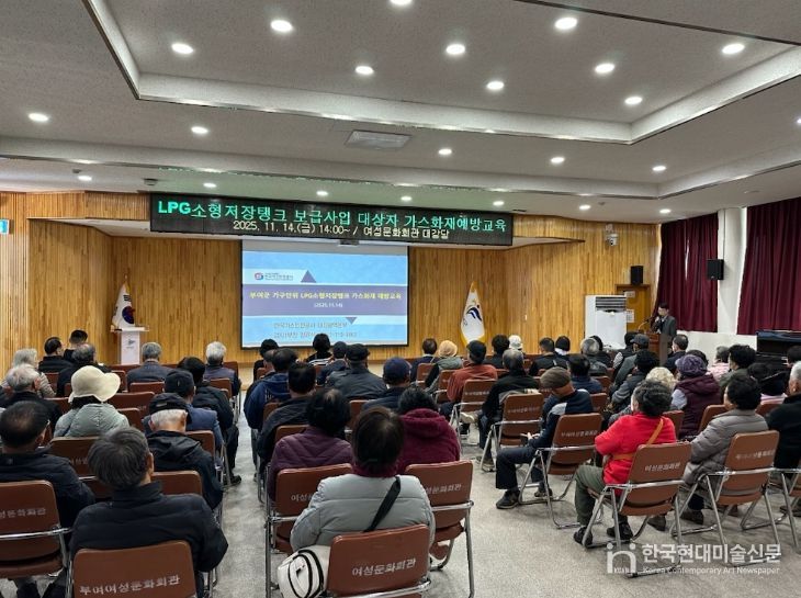 한국현대미술신문 신정은 기자 | 부여군이 전국 최초로 실시한‘가구단위 LPG소형저장탱크 지원사업’ 참여자를 대상으로 여성문화회관 대강당에서 가스 화재 예방 교육을 진행했다고 18일 밝혔다.