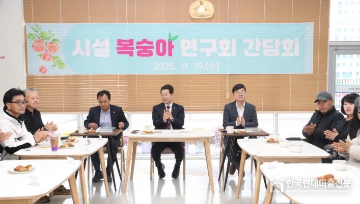 한국현대미술신문 기자 | 부안군은 권익현 부안군수가 지난 19일 부안푸드앤레포츠센터에서 시설복숭아연구회 회원들과 현장 간담회를 열고 지역 복숭아 산업 발전 방안을 논의했다고 밝혔다.