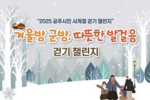 한국현대미술신문 신정은 기자 | 공주시는 시민의 일상 속 걷기 습관 형성과 활성화를 위한 2025년 공주시민 사계절 걷기 챌린지의 마지막 회차 ‘겨울밤 군밤, 따뜻한 발걸음’을 운영한다고 밝혔다.