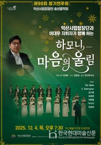익산시립합창단은 12월 4일 오후 7시 30분, 제90회 정기연주회 '하모니-마음의 울림'을 익산예술의전당 대공연장 무대에 올린다.