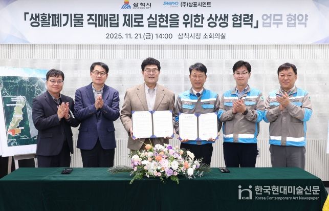 한국현대미술신문 원진 기자 | 삼척시는 11월 21일 향토기업 ㈜삼표시멘트와 ‘생활폐기물 매립 제로 실현을 위한 상생협력’ 업무협약을 체결했다.
