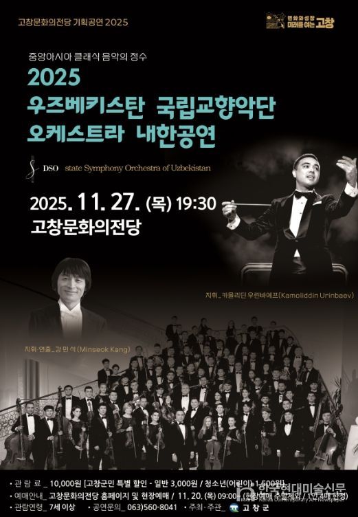 한국현대미술신문 기자 | 오는 27일 저녁 7시30분 고창문화의전당에서 ‘우즈베키스탄 국립교향악단 오케스트라 내한공연’이 진행된다.