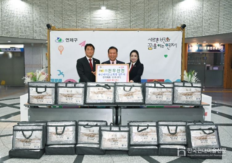 한국현대미술신문 정소영 기자 | 연제구는 11월 24일 ㈜천우산전(대표 김두석)으로부터 지역 내 저소득 중장년층 1인 가구 지원을 위한 전기매트 33개(100만 원 상당)를 전달받았다.