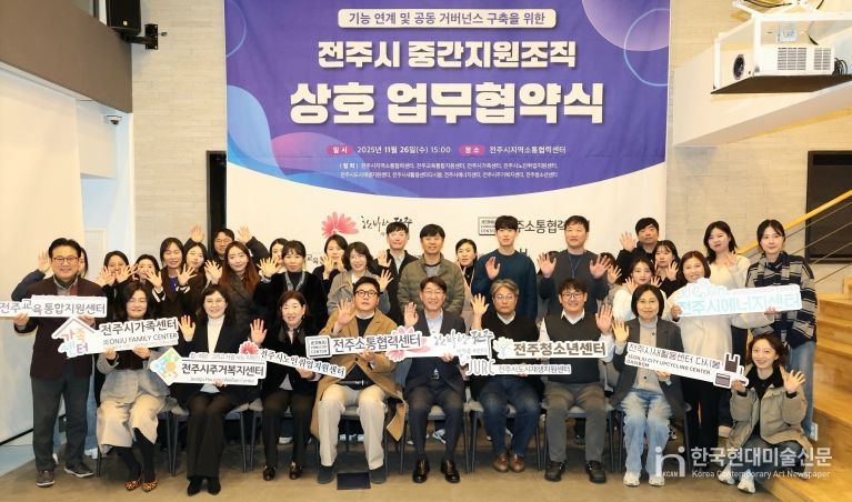 한국현대미술신문 기자 | 전주시 행정과 주민 공동체의 가교역할을 담당하는 9개 중간지원조직이 협업과 연계를 통해 맞춤형 서비스를 제공하기로 뜻을 모았다.