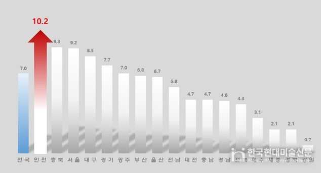 한국현대미술신문 박재남 기자 | 인천광역시는 2025년 9월 기준 출생아 수 증가율이 전년 동기 누계 대비 10.2%를 기록하며 전국 1위를 기록했다.