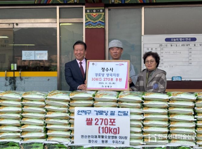 한국현대미술신문 정소영 기자 | 연제구는 11월 25일 정수사(주지 원광스님)로부터 관내 경로당을 위한 양곡 10kg 270포를 기탁 받았다.