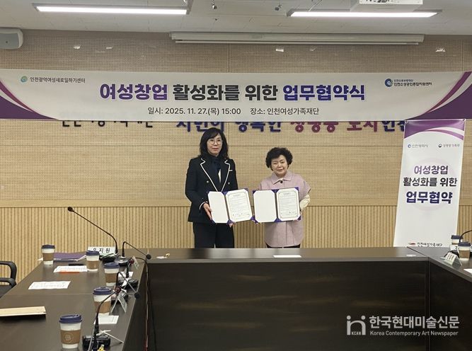 한국현대미술신문 박재남 기자 | 인천신용보증재단 인천소상공인종합지원센터와 인천여성가족재단 인천광역여성새로일하기센터는 '여성 창업 활성화를 위한 업무협약'을 체결했다고 27일 밝혔다.