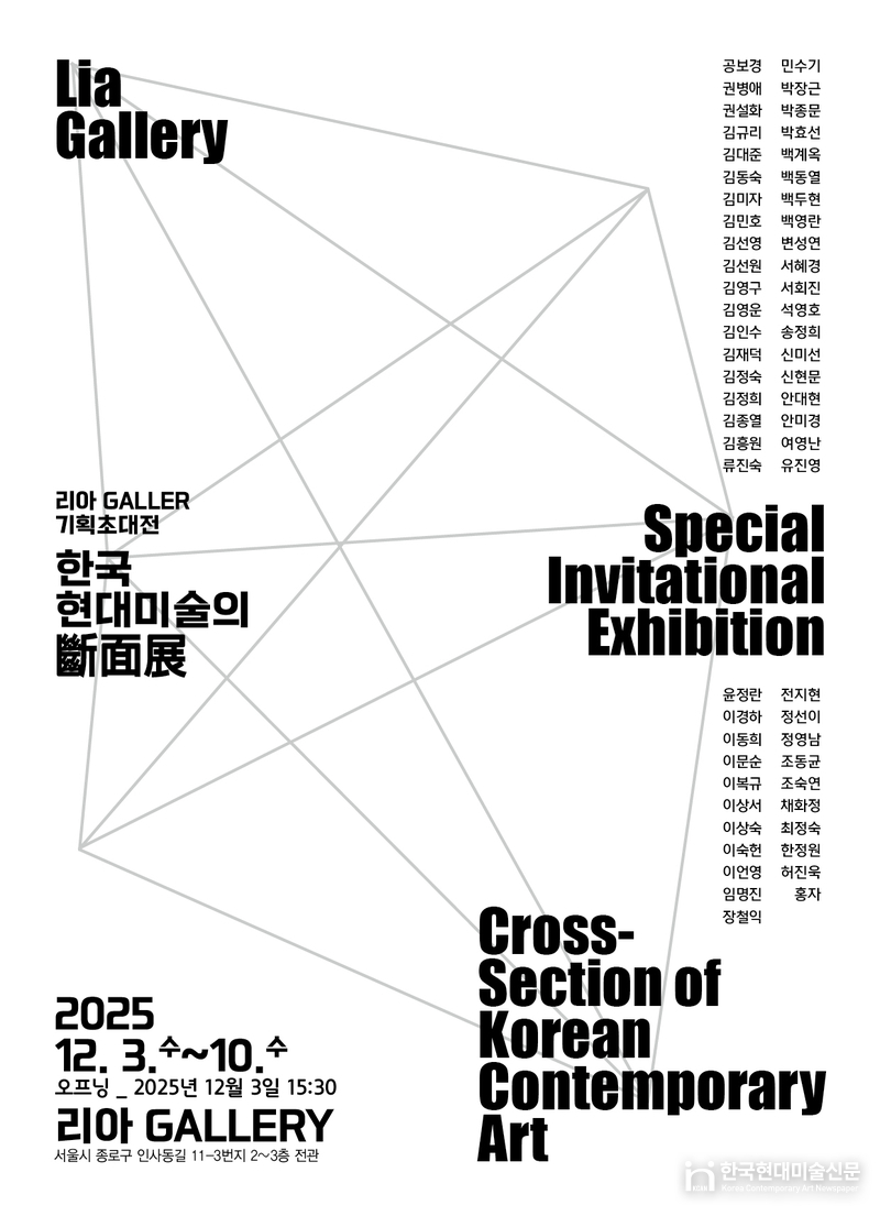 한국현대미술신문 김미정 기자 | 리아갤러리(대표 배진한)는 12월 3일부터 12월 10일까지 기획초대전 ‘한국현대미술의 斷面(단면)展’을 개최한다고 밝혔다.