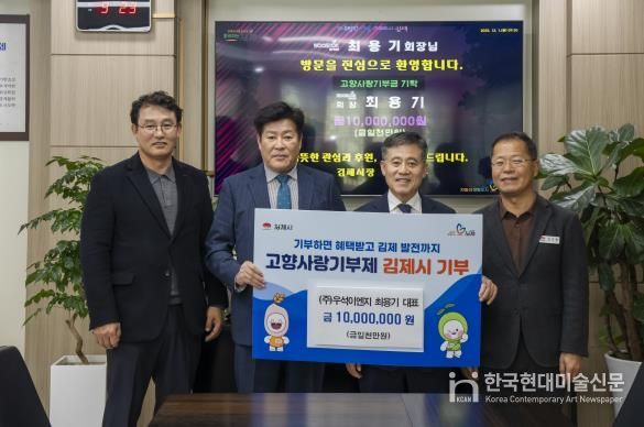 한국현대미술신문 기자 | 김제시는 2일 ㈜우석이엔씨 최용기 회장이 김제시 고향사랑기부제에 1,000만원을 기탁했다고 밝혔다.
