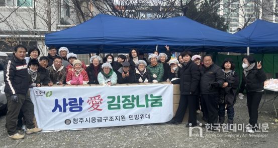 한국현대미술신문 신정은 기자 | 청주시 응급구조지원민방위대(대장 한효동)는 지난 6일 서원구 분평동에 위치한 식당에서 겨울철 취약계층 지원을 위한 ‘사랑의 김장 나눔’ 봉사활동을 실시했다.