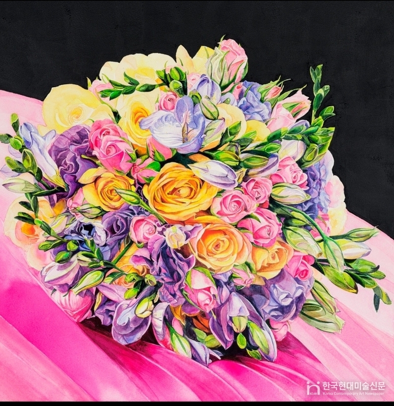 “꽃잎이 져도 향기가 남듯, 지나간 계절의 잔향을 붙잡기 위해 물빛 앞에 앉는다”는 작가의 말처럼, 화면은 사라지는 것들을 되찾으려는 기억의 복원 과정이기도 하다.