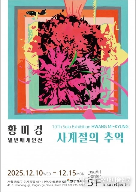 오랜 시간 자연의 색과 감정을 탐구해온 황미경 작가가 오는 2025년 12월 10일부터 15일까지 서울 인사동 인사아트센터(5층) 경남갤러리에서 제10회 개인전 ‘사계절의 추억’을 선보인다.
