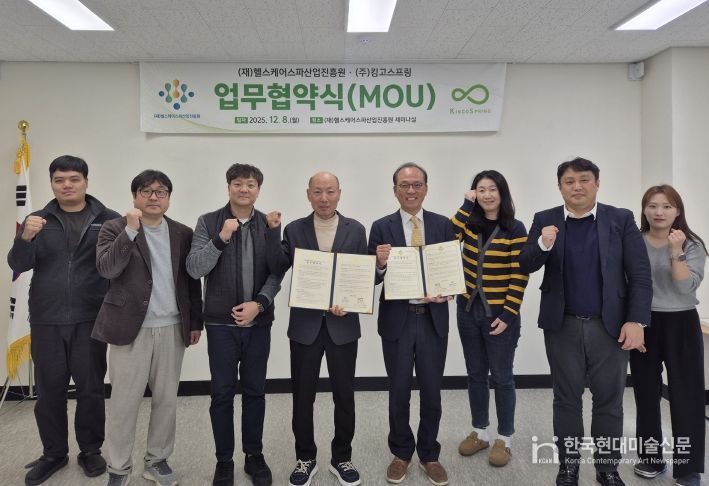 한국현대미술신문 신정은 기자 | 헬스케어스파산업진흥원(원장 이경헌)은 성균관대학교 엑셀러레이터 킹고스프링(대표이사 정진동)과 창업 활성화 및 지역 창업 생태계 구축을 위한 업무협약(MOU)을 체결했다고 8일 밝혔다.