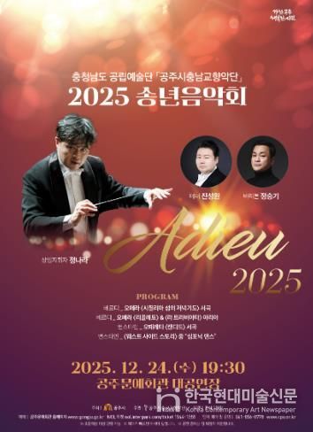 한국현대미술신문 신정은 기자 | 충청남도 공립예술단인 공주시충남교향악단은 다사다난했던 2025년을 마무리하며 성탄의 기쁨과 송구영신의 마음을 담은 송년음악회 ‘Adieu 2025’를 오는 12월 24일 오후 7시 30분 공주문예회관 대공연장에서 개최한다고 밝혔다.
