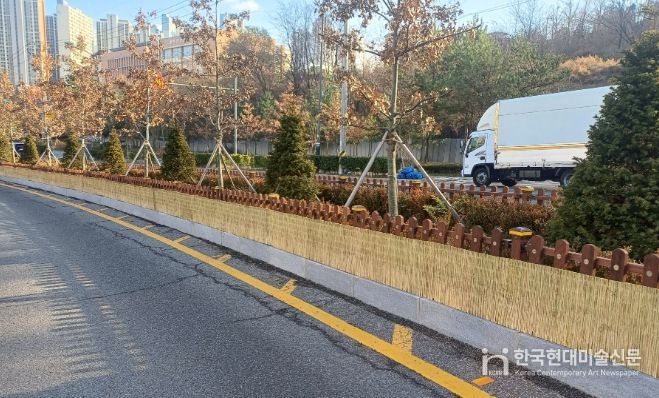 한국현대미술신문 박재남 기자 | 인천 미추홀구시설관리공단은 겨울철 한파와 강풍으로 인한 식재지 피해를 예방하기 위해 송림로, 숭의오거리 등 신규 식재 가로녹지 구간을 대상으로 지난 9일부터 3일간 방풍벽 설치와 보온 거적 작업을 실시했다.
