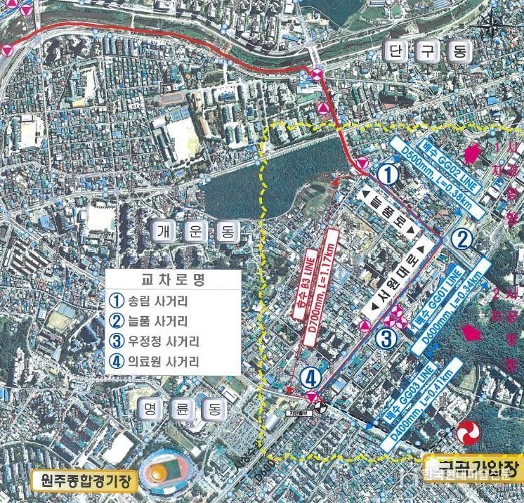 한국현대미술신문 원진 기자 | 원주시상하수도사업소는 태장배수지 설치사업의 일환으로 진행 중인 ‘송림사거리-늘품사거리-우정청사거리 구간 송배수관로 설치공사’를 마무리하고, 오는 19일까지 도로 임시 포장을 마칠 예정이다.