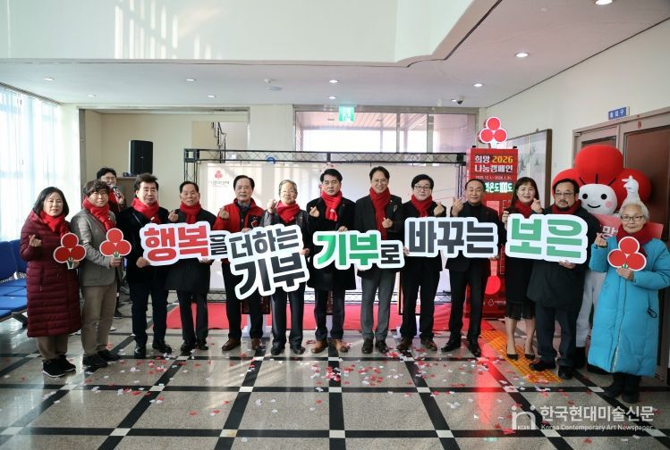 한국현대미술신문 신정은 기자 | 보은군은 15일 보은문화예술회관 로비에서 ‘희망2026 나눔캠페인 사랑의 온도탑 제막식’을 열고 2025~2026년 연말연시 이웃돕기 모금 활동의 시작을 알렸다.