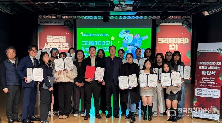 한국현대미술신문 정소영 기자 | 대구광역시와 대구문화예술진흥원은 지난 12월 16일 대구예술발전소 수창홀에서 대구관광 SNS 기자단 ‘크리에이터D’와 외국인 기자단 ‘글로벌 서포터즈’ 대상으로 해단식을 개최하며 성황리에 활동을 종료했다.