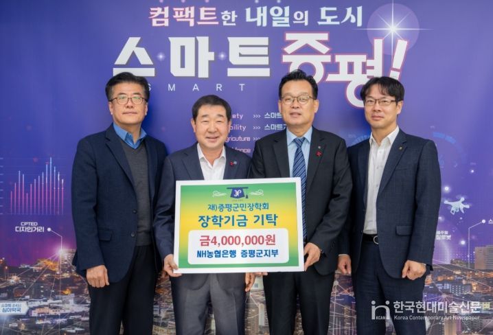 한국현대미술신문 신정은 기자 | 충북 증평군은 NH농협은행 증평군지부(지부장 연제문)가 18일 군청을 찾아 지역의 우수인재 양성을 위해 써달라며 (재)증평군민장학회에 장학금 400만원을 기탁했다고 밝혔다.