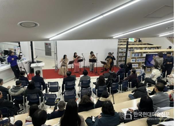 사회는 MBC 출신의 박혜진 아나운서가 맡았으며, 윤동주의 ‘서시’를 특유의 차분한 목소리로 낭독했다. 이어진 음악회 공연에는 바이올린 김지혜, 비올라 이수미, 첼로 어철민, 플루트 이지연으로 구성된 현악 4중주가 아름다운 공연을 선보였다.