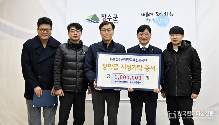 한국현대미술신문 기자 | 장수군은 케이워터기술(주)동화권사업소(소장 윤종희)가 지역 교육 발전과 인재 육성을 위해 (재)장수군애향교육진흥재단(이사장 최훈식)에 장학금 100만원을 기탁했다고 19일 밝혔다.