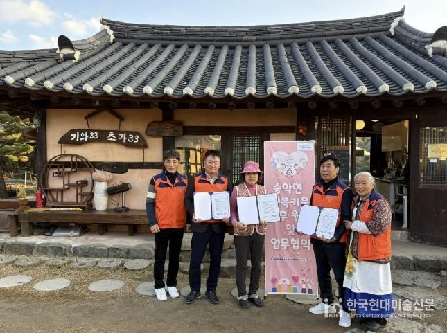 한국현대미술신문 신정은 기자 | 아산시 송악면 행복키움추진단은 지난 19일 송악면 소재 카페 ‘기와33·초가33’과 지역 내 취약계층 지원을 위한 후원협약을 체결했다.