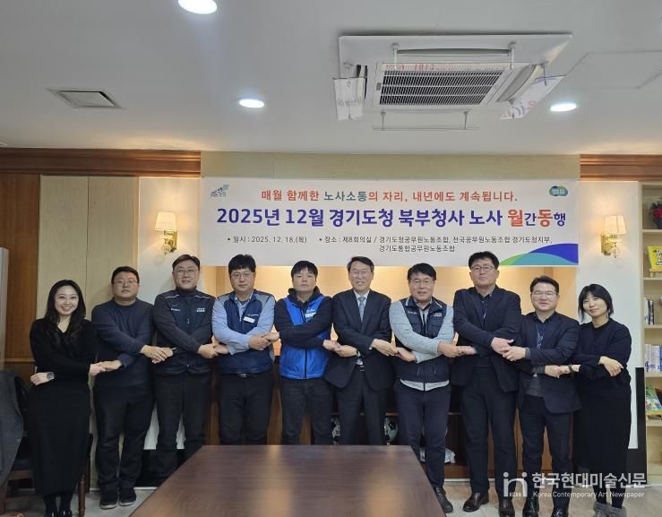 한국현대미술신문 배윤섭 기자 | 경기도 북부청과 경기도청 3개 노동조합(경기도청공무원노동조합, 전국공무원노동조합 경기도청지부, 경기도통합공무원노동조합)은 ‘노사월동(노사 월간동행)’을 매월 정기적으로 운영해 오며 실질적인 조직문화 개선과 노사 간 신뢰 회복 기틀을 마련했다고 22일 밝혔다.