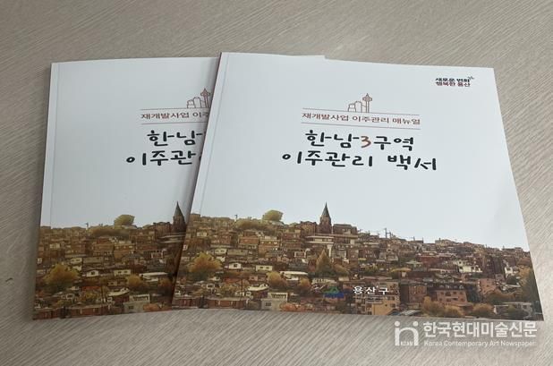 한국현대미술신문 배건 기자 | 서울 용산구가 한남3구역 재개발정비사업의 체계적인 이주관리 경험과 노하우를 집대성한 『한남3구역 이주관리 백서(재개발 이주관리 매뉴얼)』를 발간했다고 밝혔다.