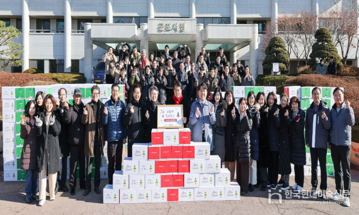 한국현대미술신문 배윤섭 기자 | 군포시는 지난 18일 안양시 동안구에 위치한 새중앙교회로 부터 크리스마스를 맞아 일상생활에서 꼭 필요한 기본 식료품으로 구성한 꾸러미‘사랑의 천사박스’1,004상자를 기탁받았다고 밝혔다.