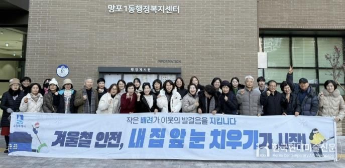 한국현대미술신문 배윤섭 기자 | 수원시 영통구 망포1동 행정복지센터는 지난 12월 19일 통장, 공무원 등 40여 명이 참여한‘내 집 앞 눈 쓸기 캠페인’을 실시했다.