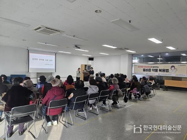 한국현대미술신문 배윤섭 기자 | 포천시 소흘건강생활지원센터는 지난 18일 포천시 노인복지관 남부분관 대강당에서 만 65세 이상 어르신을 대상으로 ‘노년기 올바른 약물 복용 및 관리 교육’을 실시했다.