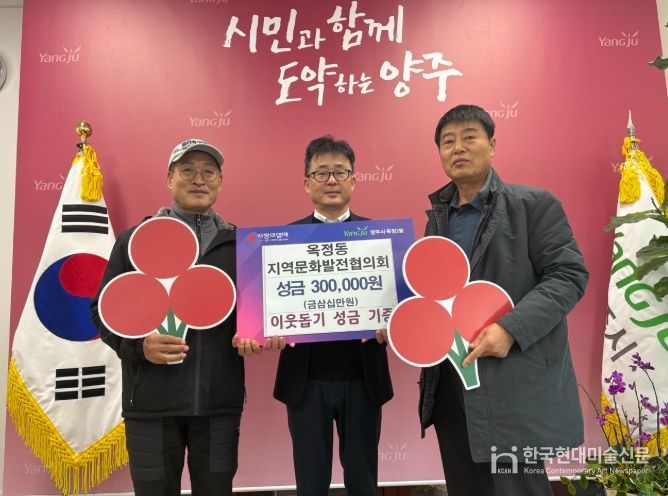 한국현대미술신문 배윤섭 기자 | 옥정동 지역문화발전협의회가 12월 22일 옥정2동 행정복지센터에서 지역 내 어려운 이웃을 돕기 위한 성금 30만 원 기부식을 하며 나눔과 상생의 가치를 실천했다.