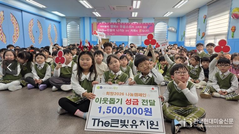 구 관계자는 “아이들의 순수한 마음이 담긴 성금이 지역사회를 밝히는 소중한 빛이 되고 있다”며 “나눔의 가치를 몸소 실천하고 있는 The큰빛유치원과 원아들에게 깊은 감사의 마음을 전한다”고 밝혔다.