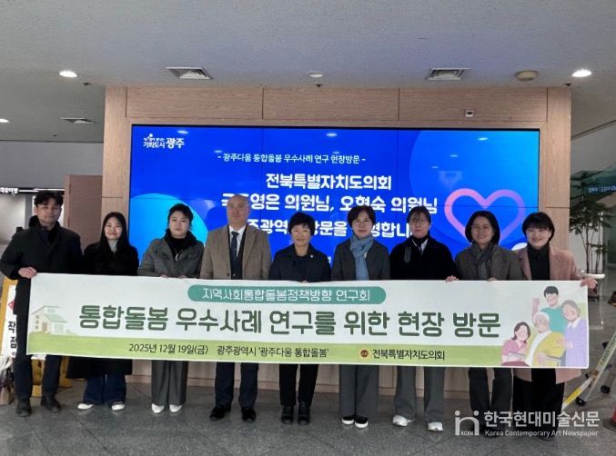한국현대미술신문 기자 | 전북특별자치도의회 ‘지역사회통합돌봄정책방향 연구회’(국주영은 대표의원)가 지난 18일 지역사회 통합돌봄 선도 모델로 평가받는 광주광역시 ‘광주다움 통합돌봄’ 현장을 방문해 사례 연구를 실시했다.