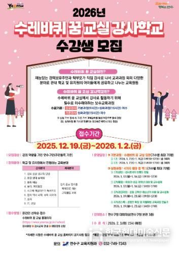 신청은 2025년 12월 19일부터 2026년 1월 2일까지 수레바퀴 꿈 교실 홈페이지를 통해 무료로 가능하다.