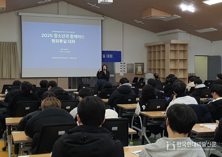 한국현대미술신문 박재남 기자 | 민주평화통일자문회의 인천서구협의회(회장 유정학)는 지난 22일 대인고등학교 강당에서 대인고 3학년 학생 및 교사 등 130여 명이 참석한 가운데 ‘2025년 청소년과 함께하는 평화통일 대화’를 개최했다.