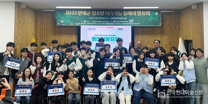 한국현대미술신문 원진 기자 | 인제군이 주최하고 UN지속가능발전교육 인제전문센터가 주관한 ‘2025 인제군 청소년 지속가능발전 동아리 발표회’가 지난 22일 인제군 지역공동체사업센터에서 열렸다.